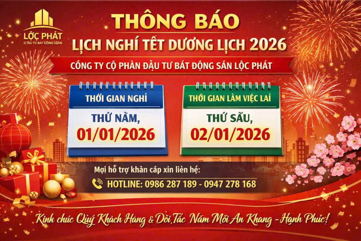 Bước sang năm mới 2026, Công ty Bất Động Sản Lộc Phát xin gửi tới Quý Khách hàng, Quý Đối tác cùng toàn thể anh chị em lời chúc sức khỏe dồi dào – tài lộc hanh thông – vạn sự như ý.